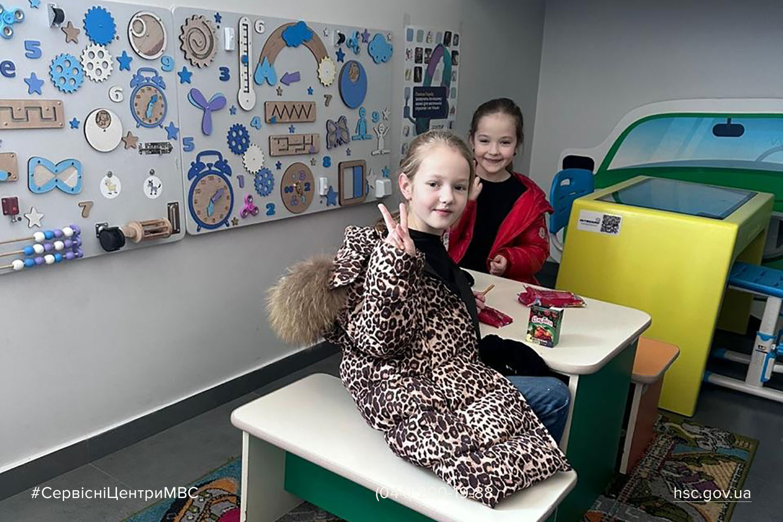 У кожному з наших територіальних сервісних центрів МВС облаштовані дитячі куточки, де маленькі відвідувачі можуть комфортно провести час — погортати чи почитати книжечки, помалювати у розмальовках і погратись іграшкою. Ці куточки створені з думкою про дітей, щоб батьки могли спокійно та приємно вирішити свої дорослі справи.