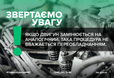 Головний сервісний центр МВС роз’яснює: якщо двигун замінюється на аналогічний, така процедура не вважається переобладнанням.