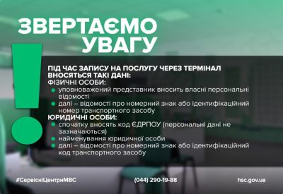 Важливо! Послуги з екзаменації передбачають особистий запис до ТСЦ МВС: онлайн або в терміналі.