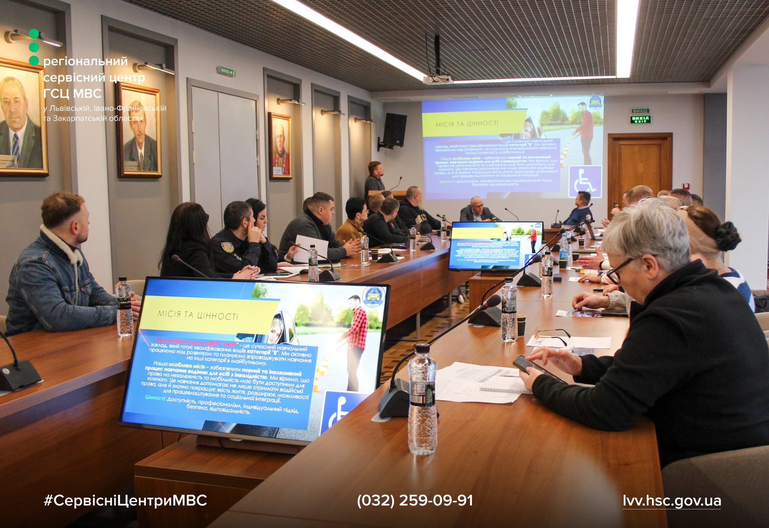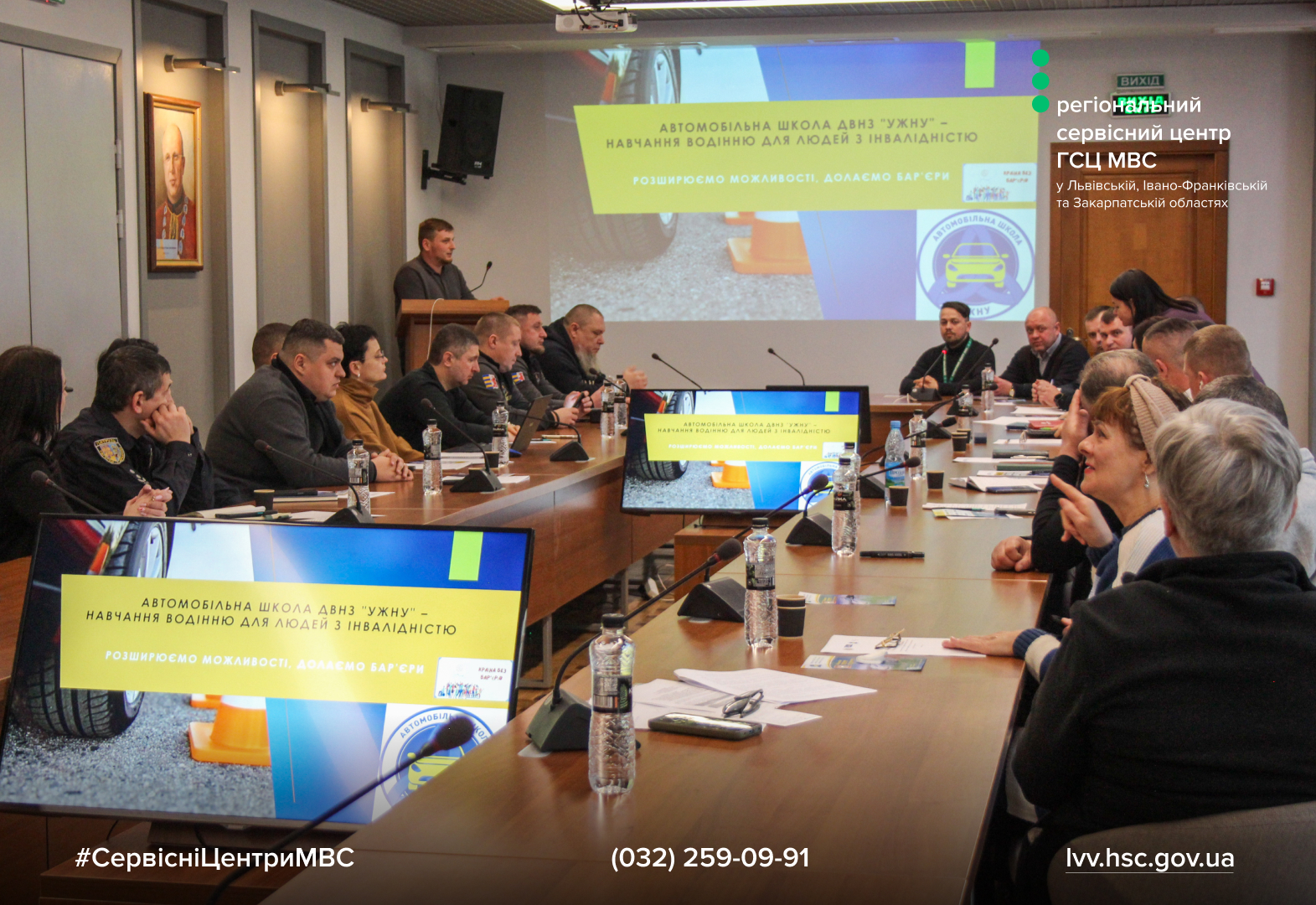 Сервісні центри МВС Львівської, Івано-Франківської та Закарпатської областей разом із фахівцями «Безбар’єрної автошколи», яка на базі Львівського державного університету внутрішніх справ, і представниками автошколи Ужгородського національного університету долучилися до обговорення практичних аспектів навчання осіб з інвалідністю керуванню транспортними засобами.