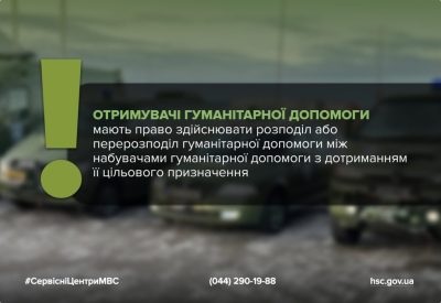 Відповідно до статті 3 Закону України «Про гуманітарну допомогу», отримувачі гуманітарної допомоги мають право здійснювати розподіл або перерозподіл цієї гуманітарної допомоги між набувачами гуманітарної допомоги з дотриманням її цільового призначення без додаткового погодження з донором.