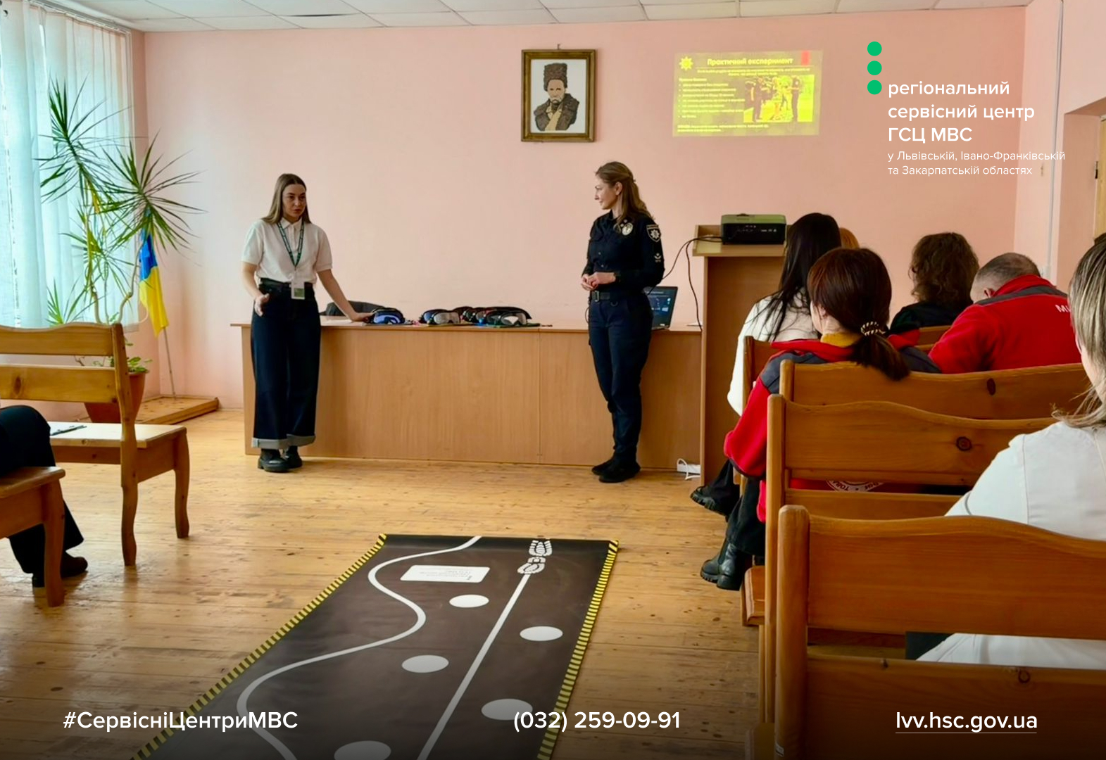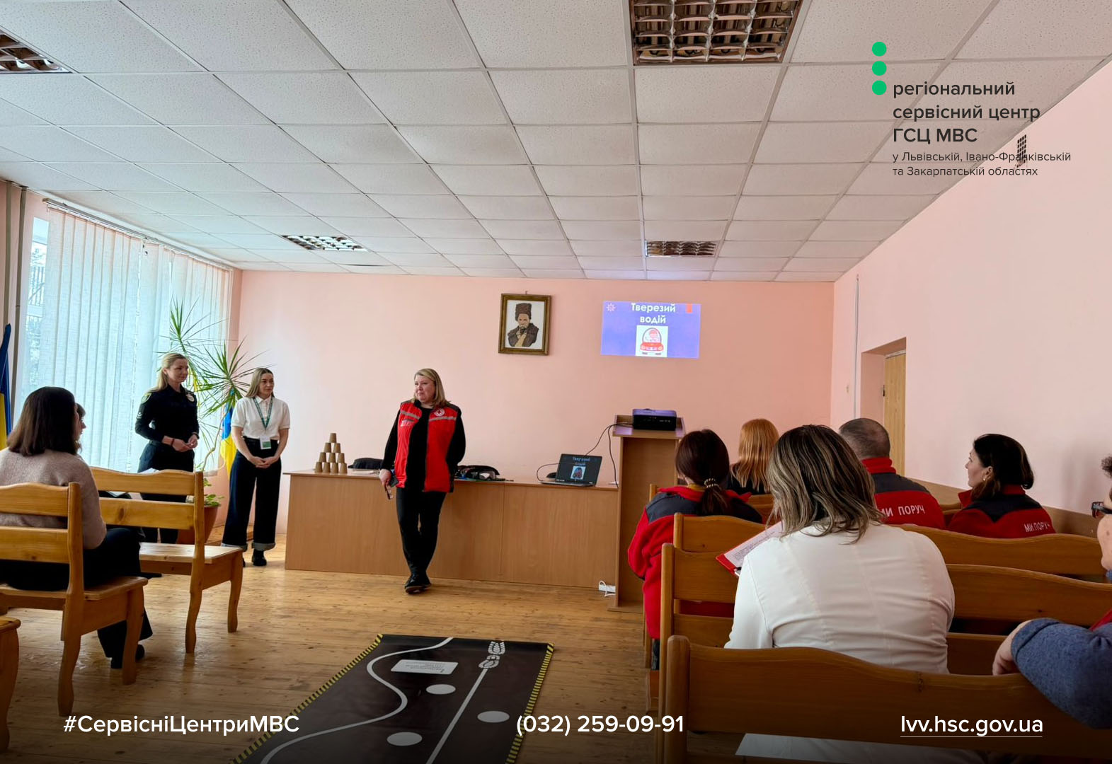 Днями сервісні центри МВС Львівської, Івано-Франківської та Закарпатської областей спільно з представницею патрульної поліції Івано-Франківської області провели практичний тренінг для працівників Калуської організації Товариства Червоного Хреста України. Захід був спрямований на підвищення обізнаності про ризики керування транспортом у стані алкогольного сп’яніння, під впливом наркотичних речовин, рецептурних препаратів чи втоми.