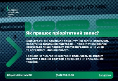 Пріоритетний запис не передбачає пільги на послуги в ТСЦ МВС
