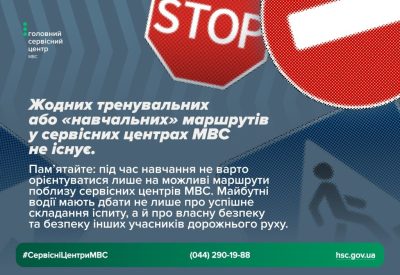 У соціальних мережах та серед майбутніх водіїв інколи поширюється хибна інформація про нібито існування «тренувальних маршрутів» або можливість «потренуватися» перед практичним іспитом у сервісному центрі МВС. Насправді це не відповідає дійсності.