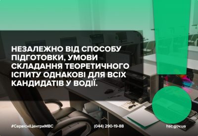 Тож перед початком іспиту обов’язково повідомте адміністратора сервісного центру МВС, як саме ви готувалися до складання теорії — у закладі з підготовки водіїв чи шляхом самопідготовки.