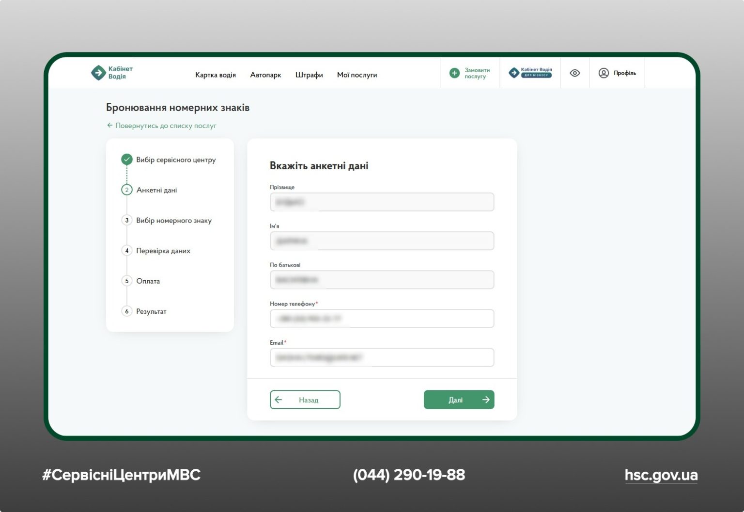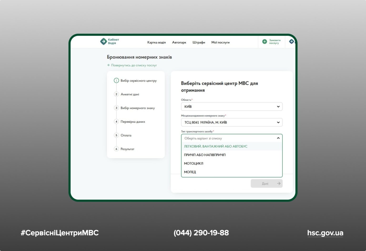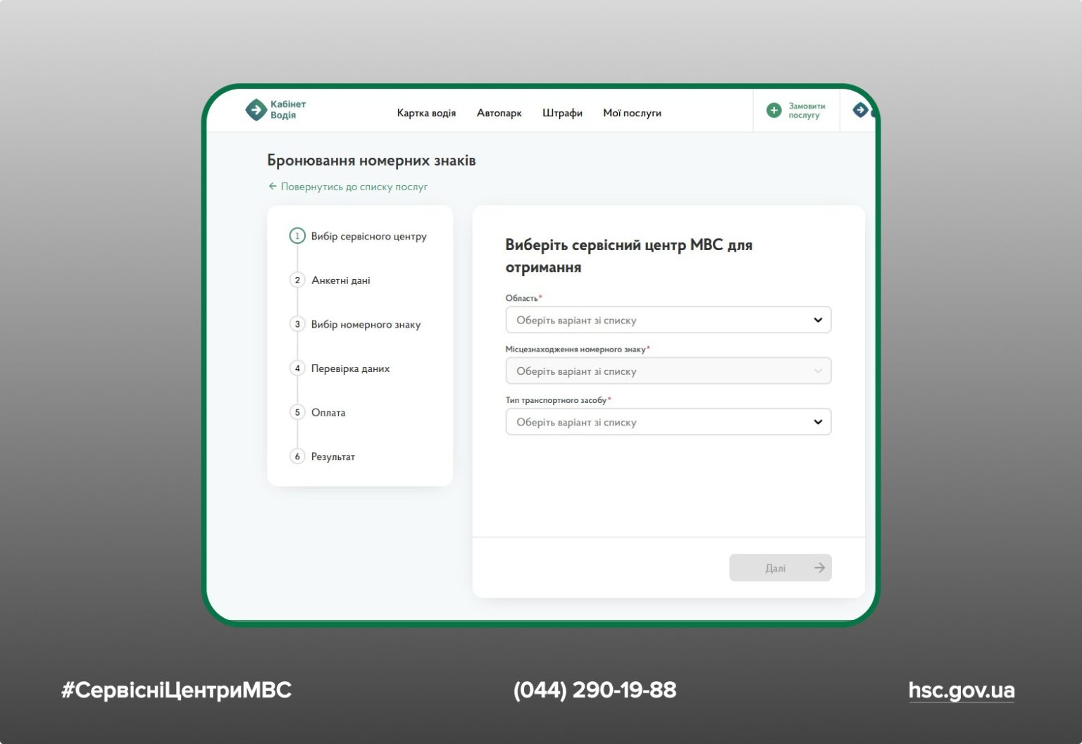 Онлайн-сервіс дозволяє обрати та забронювати бажану комбінацію номерного знака.