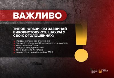 Головний сервісний центр МВС та Департамент кіберполіції застерігають: ніколи не публікуйте фото свого посвідчення водія чи інших документів в інтернеті. Адже аферисти можуть використати зображення та персональні дані у незаконних схемах, зокрема для виготовлення підробок.
