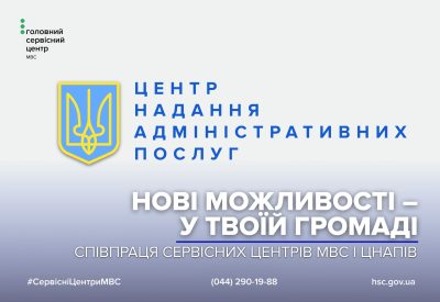 У межах такої взаємодії у Центрах надання адміністративних послуг (ЦНАПах) постійно впроваджуються найпопулярніші послуги сервісних центрів МВС – від реєстрації транспортних засобів до обміну посвідчення водія.